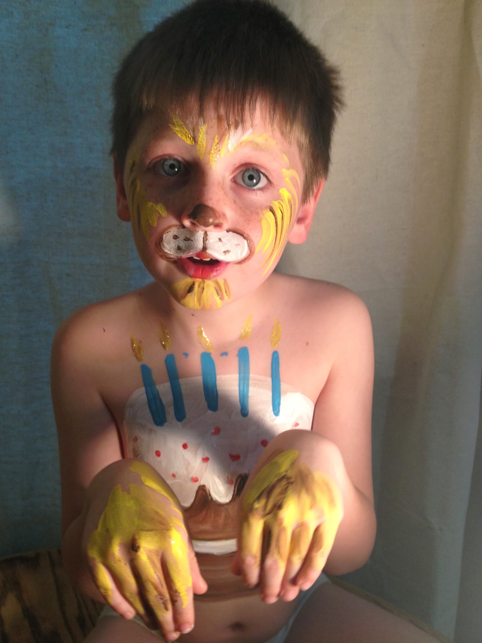 I love how I am not quite sure what he is talking about. Today Kosmo got off the bus and asked me to paint a cake on his belly with a cat on it….At least I THINK that’s what he said.