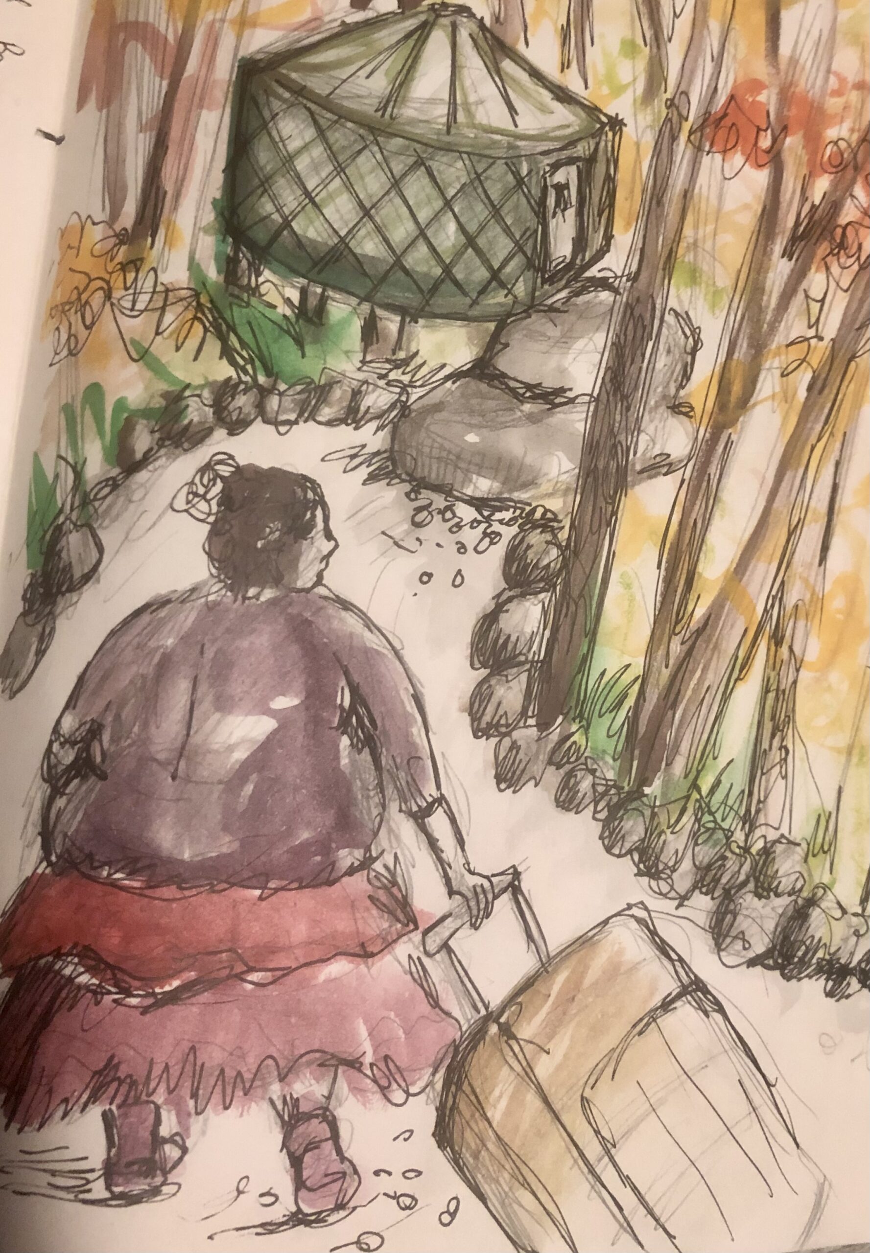 I walk unafraid thru the woods at night and manage to sleep a bit. I wake up to pee and step outside in the cold. I can not make it to the bathhouse so I squat in the woods. As I look up at the sky, I see a shooting star.  It feels like it is just for me. I feel an ancient tug of connection.