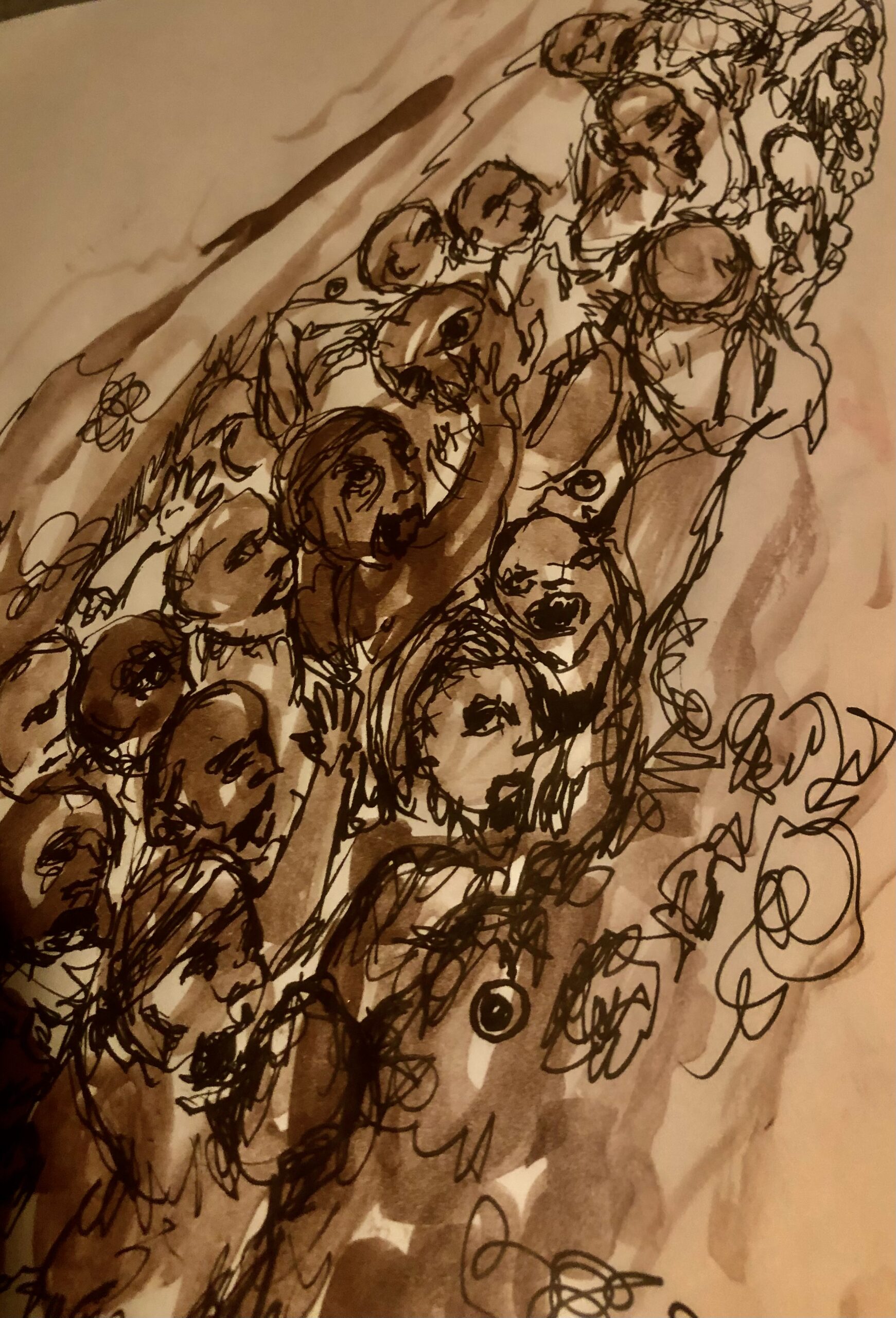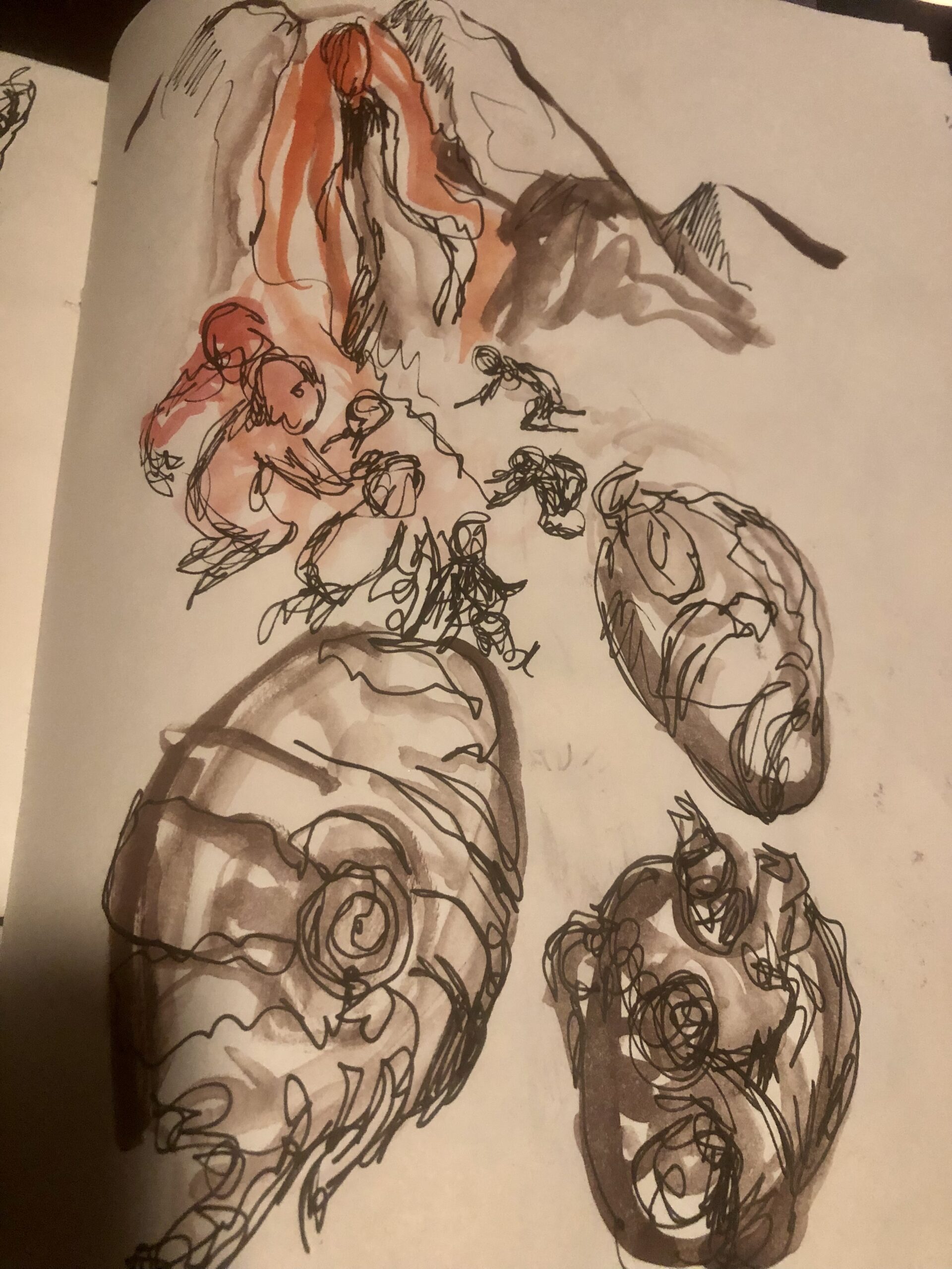 The journeys last 90 minutes. I spent the majority of that time in this muddy ravine, it was a death march, the ravine was full of wounded men, this was a trench, it was wartime, I see filthy men screaming, severed limbs, severed body parts, wails and horrors. Men bloodied and bandaged, caked with mud, infection already setting in. They carry the most wounded on their shoulders. Their mouths are full of mud. The dead look like clay sculptures. The living have eyes with no white parts. They are a different kind of dead, exhausted, trudging trudging. I tell myself to not be afraid, I say this is going to be messy ed, we have to get this bad stuff out, before we can let the good stuff in. At some point I see shamans dancing with feathers and headdresses, their faces contorted, there is a mountain of vagina, its vagina mountain, some followers are praying and chanting by her stream. And then it is back to the trenches again. I see men clawing at the mudslides flanking them, burying them, they are getting too crowded to move, they heave and ho trudging on slower and slower. Thats how the ketamine works…. Real fast and then it slows down and kind of peters out. I am now just a person listening to music, laying on my back feeling all the pain in the world.