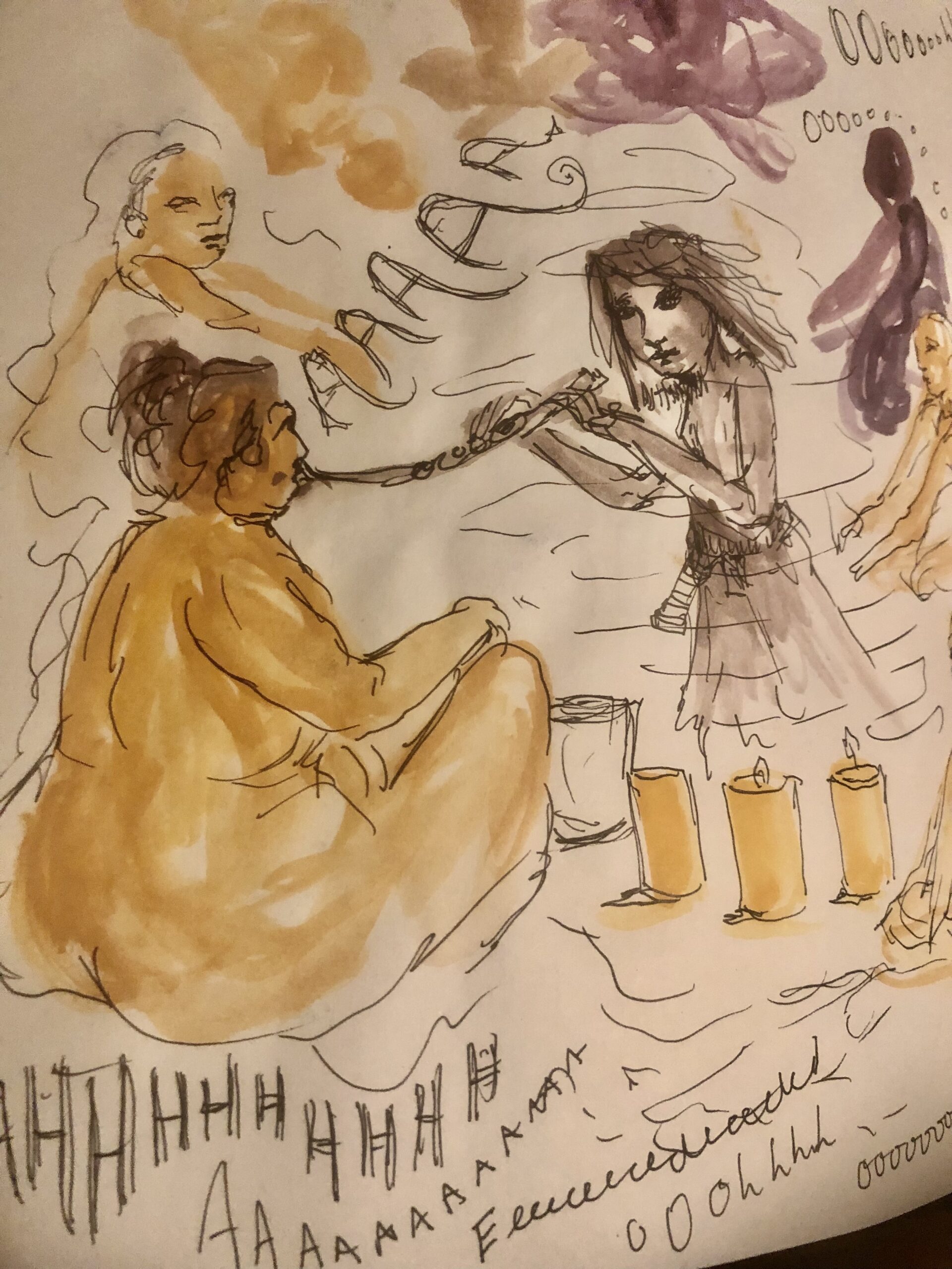 I force myself to do yoga in the morning and I trust my Shaman as she pushes up my giant belly and manipulates my psoa opening my hips. I trust her as she prepares the pipe and sings to me.  The yoga room is bathed in light, we are alone sitting on the floor. I am uncomfortable in my body, there is no way to sit. But I lean in and take the tree bark up my nose, this time there is more, I will purge, I cough as the ash comes out my mouth, but again, a rush of calm washes over me. I begin swaying and my Shaman is singing, she wants me to repeat what she sings. I have no embarrassment and i am aware how rare that is. I have always been embarrassed of my voice, my lack of rhythm. I feel nervous just clapping to a beat, singing happy birthday I feel like I’m off key and ruining it for everyone, even the OM I release in yoga, feels wrong. SO when I open my mouth and I sing, Aye aye aye Trust myself. I sing I love myself, I trust myself, I am alive I am breathing, I am moving I am singing, I trust myself. I sing my ancient sounds and I feel transported in time I am dancing around a fire, My tribe is asleep, I am singing our songs. Ayayayeee trust myself.  People peek in to see the commotion, they tell me later it was beautiful. I know it to be true, as I was singing something in my throat opened up like a bloom. It has never been opened before. It was amazing. I heard sounds come out of me I have never heard and when it was over and the song came to a close My shaman was crying oh how I love her so.