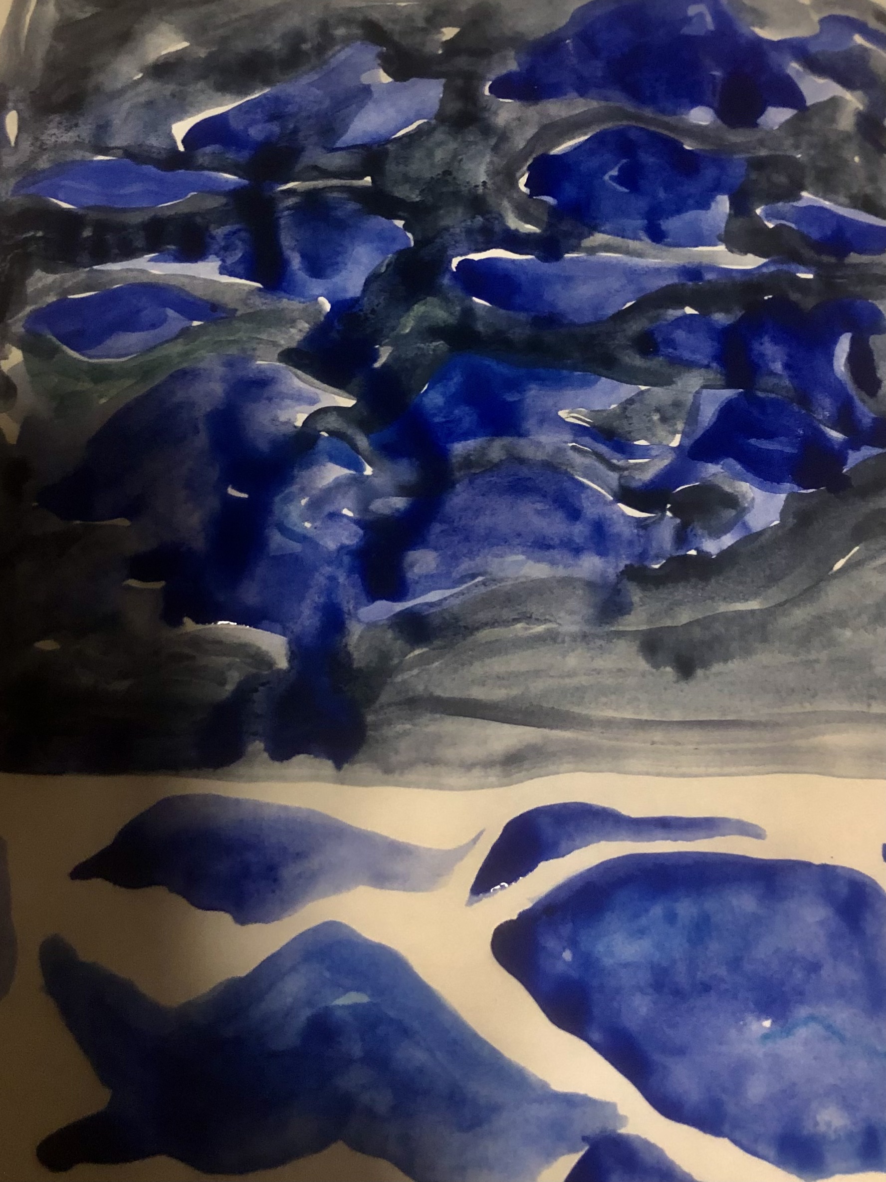 “ Oh you have 14 angels that surround you always” she says, listing names like ezekialbalboa shavenmunez just huge strangely biblical names, In my head for the first time ever…I have seriously never experienced anything like this in my life. I see bright electric blue lights undulating in the darkness.   They look like manta rays, that swim up to my third eye and then morph into each other . It is calming and mesmerizing.